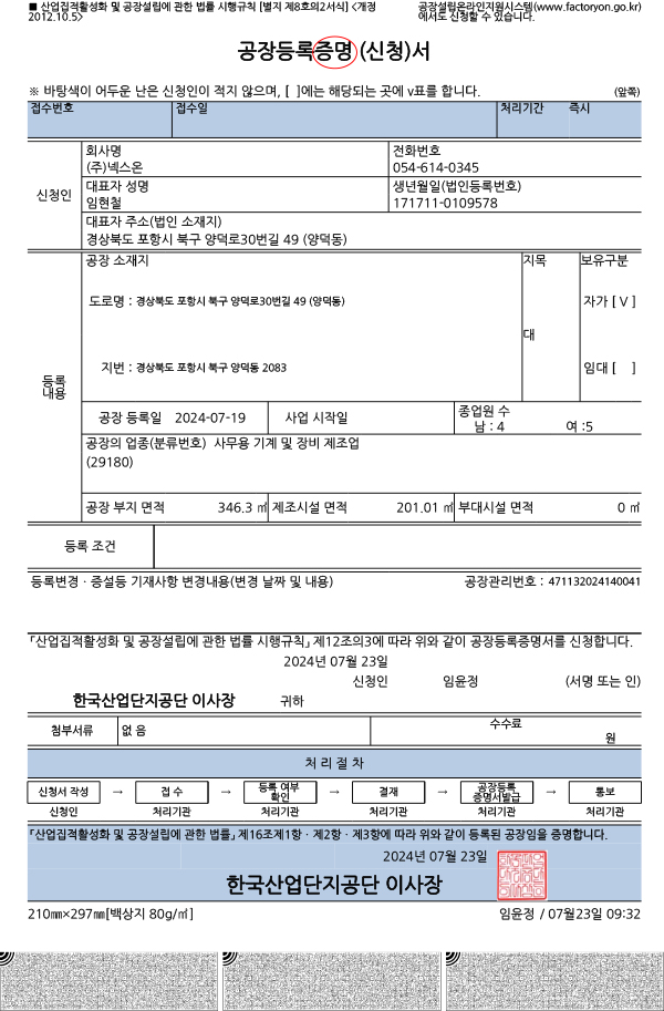 Factory Registration Certificate