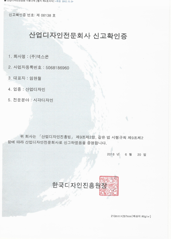 Certificate of Registration as an Industrial Design Company