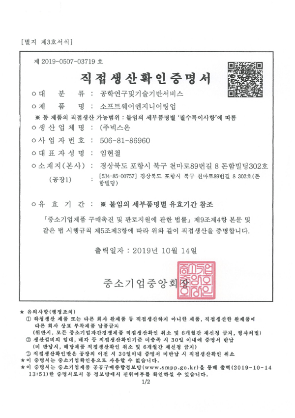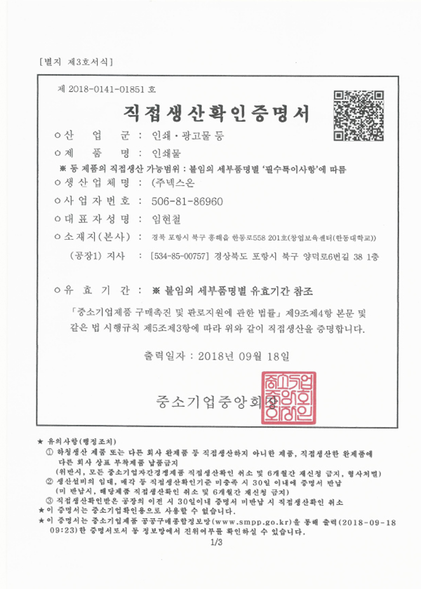 Certificate of Direct Production Confirmation