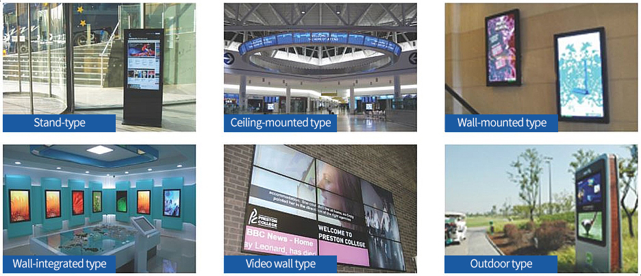 Manufactures custom DID monitors that consider interior effects and space utilization, with designs suitable for installation locations and purposes such as stand-type or wall-mounted.